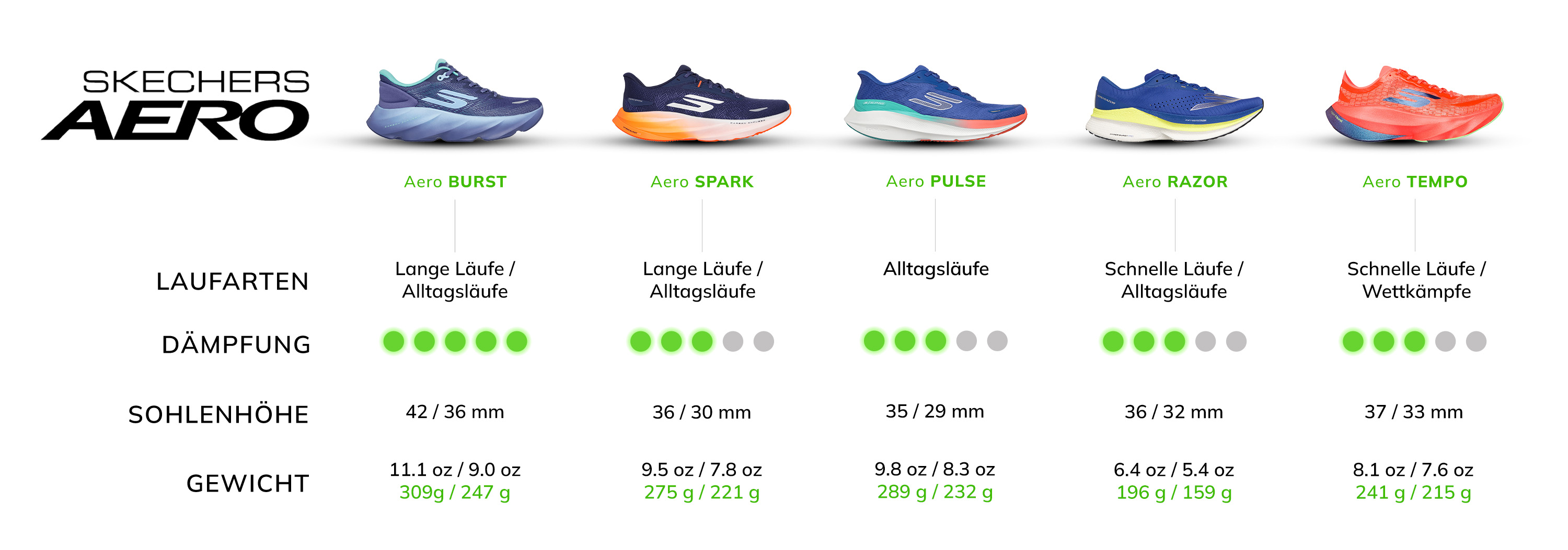 - Gewicht: 227 g pro Schuh bei Damengröße 37